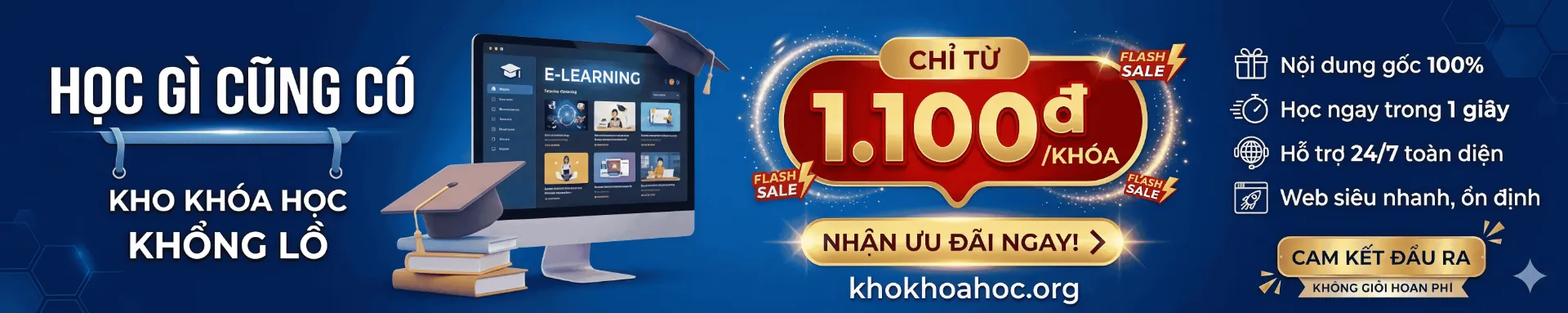 Tổng kho khóa học online lớn nhất hiện nay, uy tín, chất lượng và nhanh chóng. Chúng tôi liên tục cập nhật các khóa học mới đáp ứng nhu cầu của các bạn.