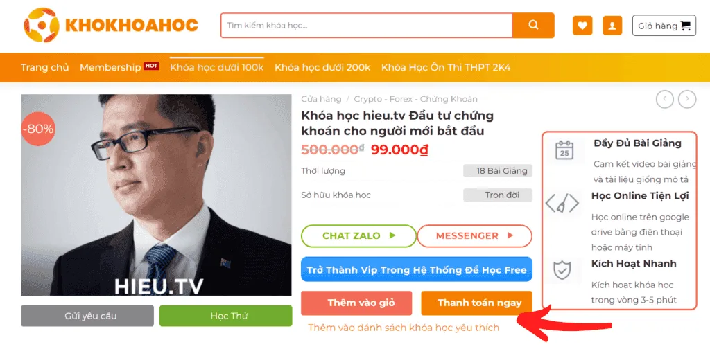 B1: Tìm khóa học cần mua và chọn Thanh Toán Ngay