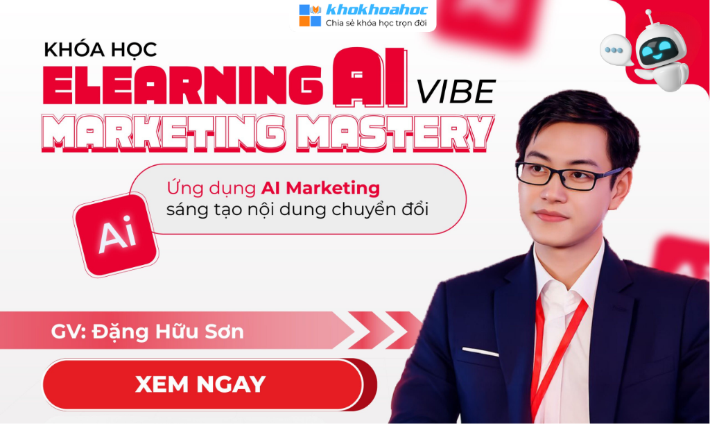 Share Khóa Học Elearning Ai Vibe Marketing Mastery Cùng Đặng Hữu Sơn hướng đến việc đập tan nỗi sợ công nghệ và chuyển người học sang tư duy AI-First trong Marketing, tức là không chỉ sử dụng công cụ AI mà còn biết tối ưu chiến lược và quy trình dùng AI để đạt hiệu quả vượt trội.