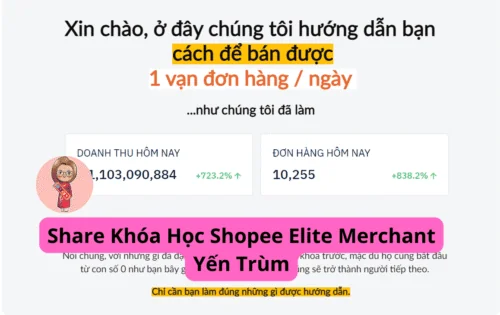 Share Khóa Học Shopee Elite Merchant Yến Trùm là khóa học hướng dẫn bạn cách để bán được 1 vạn đơn hàng / ngày. Tất nhiên, nếu bạn cảm thấy 1 vạn đơn là hơi nhiều, chúng tôi vẫn có thể hướng dẫn bạn để bán được 1.000 đơn hay 100 đơn/ngày. Nói chung, với những gì đã đạt được của các bạn học viên khóa trước, mặc dù họ cũng bắt đầu từ con số 0 như bạn bây giờ, chúng tôi tin rằng bạn cũng sẽ trở thành người tiếp theo.