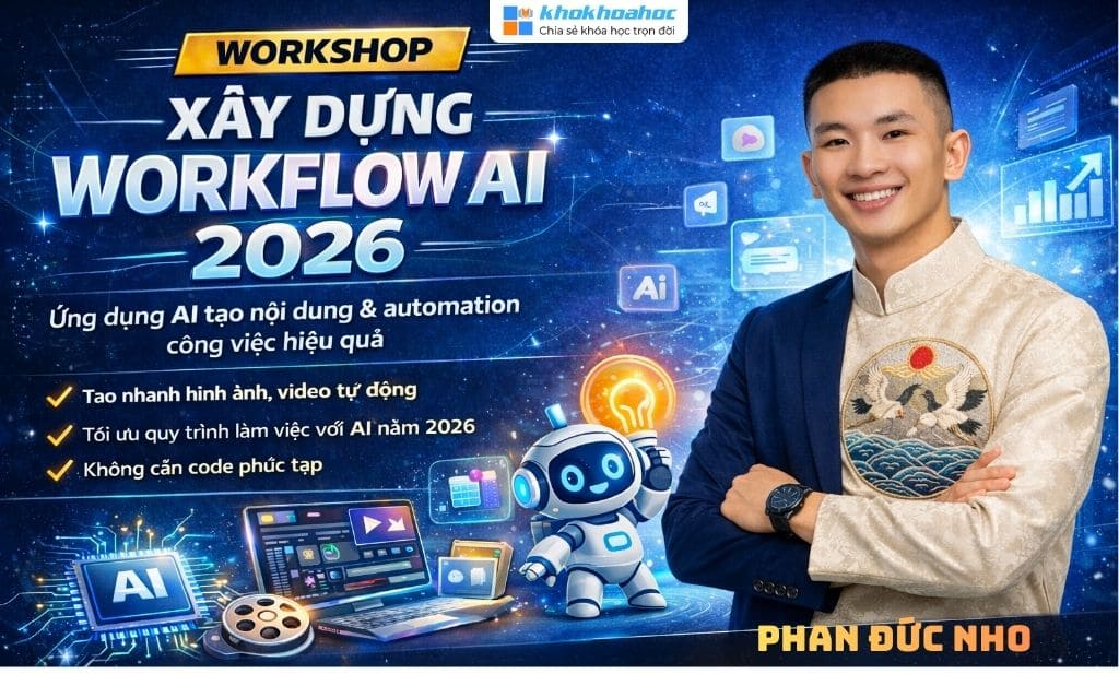 Share Khóa Học Xây Dựng Workflow AI 2026 Phan Đức Nho là buổi Workshop giúp bạn nắm bắt cách xây dựng quy trình (workflow) ứng dụng AI thực tế – từ tự động tạo nội dung (video, hình ảnh) đến vận hành hệ thống AI hiệu quả trong công việc và marketing.