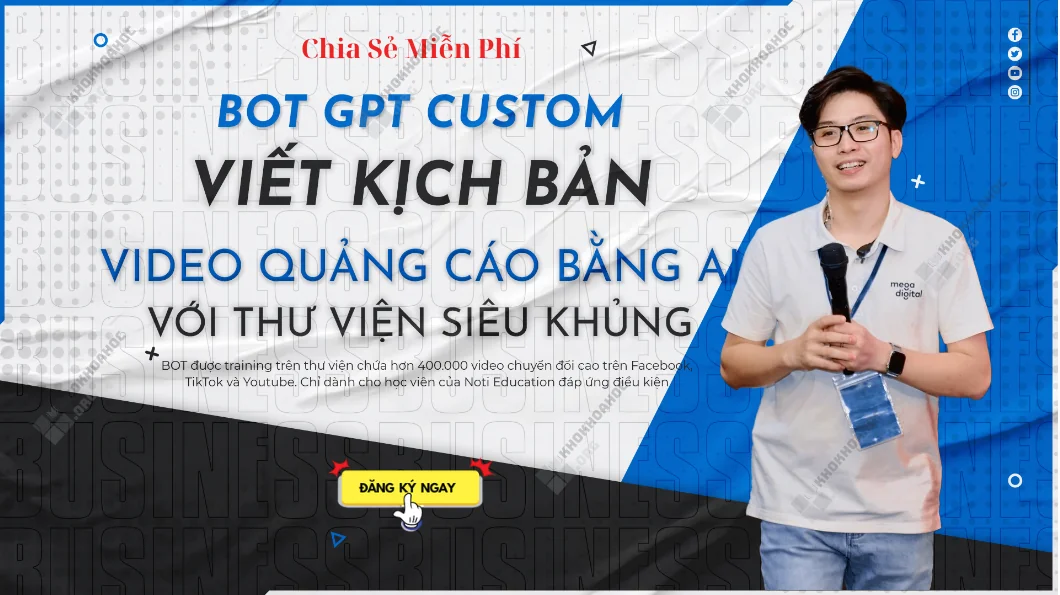 Share Bot GPT Custom – Viết Kịch Bản Video Quảng Cáo Bằng Ai này được viết trực tiếp trên chat GPT được training với thư viện hơn 2.000.000 video trên Facebook, TikTok, Youtube.