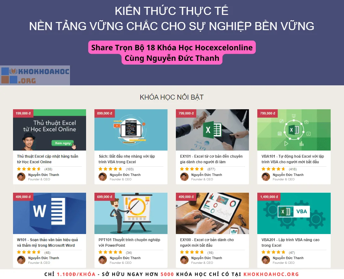 Share Trọn Bộ 18 Khóa Học Hocexcelonline Cùng Nguyễn Đức Thanh